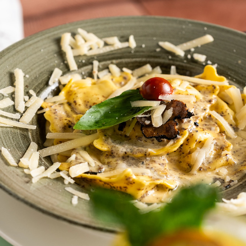 Les classiques sont au rendez-vous (carbonara authentique, cacio e pepe, tagliata, saltimbocca), mais aussi des créations signature où textures et arômes dialoguent avec finesse.